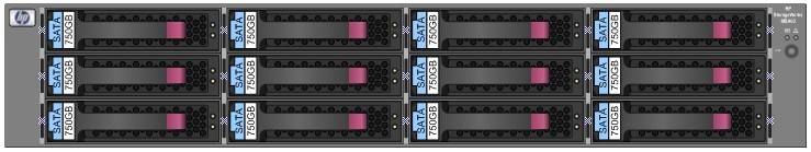 The HP StorageWorks 60 Modular Smart Array enclosure is a 2U Serial Attach SCSI (SAS) disk drive storage enclosure supporting 3.5 inch SAS, Serial ATA (SATA) and SAS Midline (MDL) drives. This enclosure delivers industry-leading data performance, availability, storage density, and upgradeability to meet customers' demanding and growing storage needs. This enclosure is designed to support 3.5 inch Universal SAS, SATA or SAS MDL hard drive form factors. The MSA60 enclosure supports direct attach storage (DAS) to HP ProLiant and HP Integrity Servers. The MSA60 supports the cascading of shelves in a 1+3 configuration to allow a maximum of 48 drives in an 8U configuration behind each of the two external ports on the HP Smart Array P800, the HP Smart Array E500, HP Smart Array P411 or the HP Smart Array P812 Controllers for a total of 96 drives in 8 enclosures (this single controller port incorporates four lanes for a total max throughput of 12Gb/s for SAS). On HP ProLiant servers Dual Domain support is available for the HP Smart Array P800 attached to a MSA60 with the addition of the HP StorageWorks Dual Domain I/O Module Option (AG779A). (Single initiator environment only). (