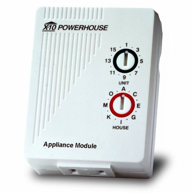 Automate or remotely control appliances from across the room or from the other side of your house. Works with fans, air-conditioners, dehumidifiers, coffee pots, stereos, TV's and more! Just plug a 2-pin appliance into the appliance module, and plug the appliance module into any normal wall socket. Control with any X10 Controller, in conjunction with Transceiver Module. Appliance Module rated at 15 amps, 1/3 hp, 500W.
