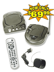 Trapped at your desk? Only have one DVD player? Let X10's DVD Anywhere System  be YOUR passport to freedom! Now you can broadcast DVD movies, video clips, home movies and more from your computer's DVD player to ANY TV up to 100' away - even through walls! No longer be chained to your PC's monitor to watch DVD movies! Order now & get a $20 Online Gift Certificate!