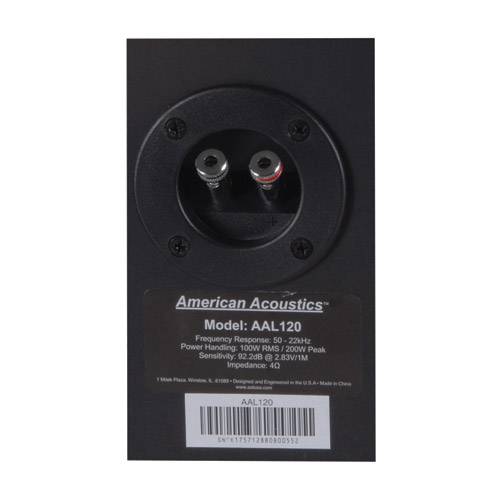American Acoustics Labs (AAL) Series loudspeakers represent years of thorough research and development in the most modern techniques of speaker design and engineering. Using advanced technology and high quality electronics and components, AAL loudspeakers assure you of exceptional performance and value. American Acoustics Labs AAL120 features uncompromising, sound that's full of impact. You and your friends will beg for mercy long before the AAL120 does. Specifications: • Woofer: 12" composite paper cone • Midbass: 5" all-natural paper cone • Tweeter: Piezo element • Power handling: 100 watts RMS/200 watts peak • Frequency response: 50-22,000 Hz • Impedance: 4 ohms • Sensitivity: 92.2 dB  2.83V/1m • Crossover frequencies: 1,500 Hz (midbass), 3,500 Hz (tweeter) • Dimensions: 24" H x 14" W x 10-1/2" D.