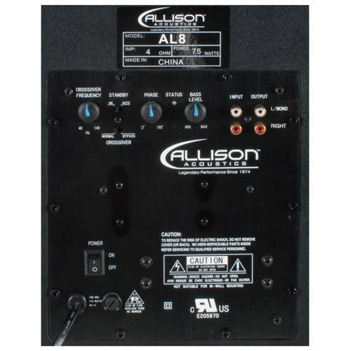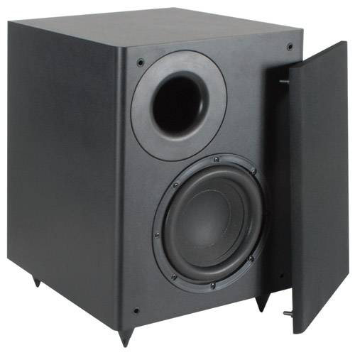 Only the best possible components were considered for use in the construction of this subwoofer, and each subwoofer has been designed to create amazing low frequency performance at a price that's more affordable than many "high-end" subwoofers. A flared port has been used to reduce port chuffing and sound localization for unlimited placement options. Stereo line-level inputs and parallel outputs allow these subwoofers to be used in a 2.1 setting or for stereo subwoofer applications, and a mono LFE input with a Crossover Bypass switch enables use with a receiver that low-passes information to a subwoofer. Lastly, a variable phase adjustment helps to adapt each subwoofer to unique rooms for the greatest amount of output. This subwoofer is a perfect choice for anyone that wants to add world class quality bass to their system at a great price! Finished in a subtle black vinyl finish that matches any decor. Specifications: • 8" high-excursion woofer • 75 watt RMS amplifier • Frequency Response: 30-180 Hz (-3 dB) • Dimensions: 18-1/2" H x 13" W x 17" D (spiked feet and amplifier included).