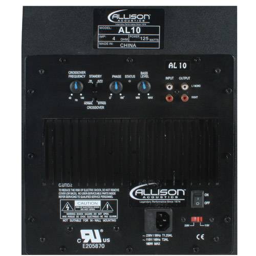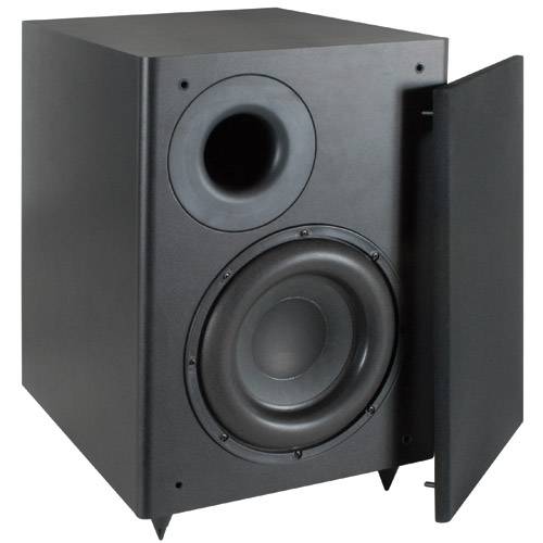 Only the best possible components were considered for use in construction of this subwoofer, and each subwoofer has been designed to create amazing low frequency performance at a price that's more affordable than many "high-end" subwoofers. A flared port has been used to reduce port chuffing and sound localization for unlimited placement options. Stereo line-level inputs and parallel outputs allow these subwoofers to be used in a 2.1 setting or for stereo subwoofer applications, and a mono LFE input with a Crossover Bypass switch enables use with a receiver that low-passes information to a subwoofer. Lastly, a variable phase adjustment helps to adapt each subwoofer to unique rooms for the greatest amount of output. Specifications: • 10" high-excursion woofer • 125 watt RMS amplifier • Frequency response: 25-180 Hz (-3 dB) • Dimensions: 19" H (20-3/4" H with spikes) x 14" W x 18" D.