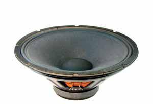 Pro sound 15" woofer for use in bass guitar cabinets or in PA loudspeaker systems. 4-ohm driver with high sensitivity. Stamped steel basket, copper voice coil wound on a polyimide former, and vented pole piece. Suitable for 1.4 to 2.5 cu. ft. sealed enclosures or 1.6 to 6 cu. ft. vented. Specifications: *Power handling: 300 watts RMS/600 watts max *VCdia: 2-1/2" *Le: 0.80 mH *Impedance: 4 ohms *Re: 2.92 ohms *Frequency range: 45-3,000 Hz *Magnet weight: 56 oz. *Fs: 51 Hz *Sensitivity: 96.9 dB 1W/1m *Vas: 3.82 cu. ft. *Qms: 4.94 *Qes: 0.54 *Qts: 0.49 *Xmax: 5 mm *Dimensions: A: 15.15", B: 13.87", C: 6.25".
