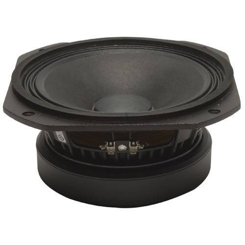 Mid/bass driver for pro audio or MI applications. Truncated cast aluminum heatsink-style basket is great for stacking in a line array. Specifications: *Power handling: 225 watts RMS *VCdia: 2" *Le: 0.82 mH *Impedance: 8 ohms *Re: 5.6 ohms *Frequency range: 100-3,000 Hz *Magnet weight: 59 oz. *Fs: 69 Hz *SPL: 97.8 dB 1W/1m *Vas: 0.65 cu. ft. *Qms: 6.43 *Qes: 0.20 *Qts: 0.22 *Dimensions: A: 8.02", B: 7.36", C: 3.75".