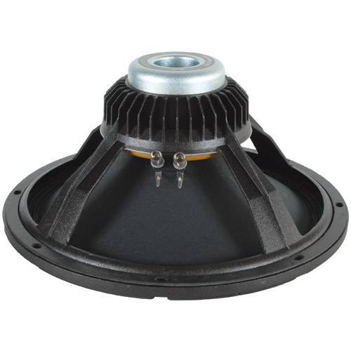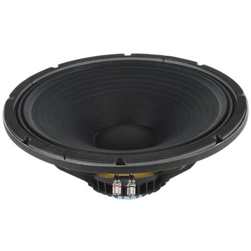 Recommended for vented professional audio enclosures for full range or as mids. Specifications: *Power handling: 450 watts RMS/900 watts max *VCdia: 3" *Le: 0.64 mH *Impedance: 8 ohms *Re: 5.27 ohms *Frequency range: 40-4,000 Hz *Magnet weight: 11 oz. *Fs: 45 Hz *Sensitivity: 100.8 dB 1W/1m *Vas: 5.4 cu. ft. *Qms: 6.70 *Qes: 0.36 *Qts: 0.34 *Xmax: 5.9 mm *Dimensions: Overall Diameter: 15.32", Cutout Diameter: 14", Mounting Depth: 6.8".