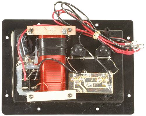 Eminence px cabinet-ready crossovers feature advanced circuit design to both preserve the crossover and your HF drivers. A common crossover problem is L-pad failure brought about by winding burnout when maximum attenuation is prolonged. Full attenuation concentrates the maximum voltage drop in a small winding area - a potentially damaging state even with high-power L-pad devices. In px crossovers, current is limited when the high frequency level control is set to '0' on its scale (±9 dB attenuation). A secondary benefit of the design is to form a voltage divider across the high frequency driver. The high-pass protection uses custom-built aerospace lamps. The tungsten filaments effectively track the program material, dynamically maintaining a safe maximum current level to the high frequency driver without introducing distortion. This circuitry provides smooth 3:1 analog compression during input overload conditions over 250 watts RMS. At full drive level approaching clipping, the electrical attenuation to the protected high frequency driver is -4.5 dB. In every way, Eminence px crossovers are a technically superior product. For use with 8 ohm drivers.