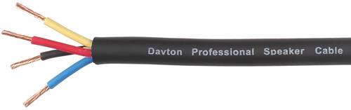 Dayton Professional cable is designed from the ground up to guarantee the best possible transfer of signal from your amplifier to your speakers. It also possesses quality materials and superior construction that will provide years of service in all portable and touring pro sound applications. The cable features high strand-count pure copper conductors, and durable PVC insulation and outer jacket. Available by the foot, as well as 30m (99 ft.) and 100m (328 ft.) spools. Specifications: *Conductors: 4 x 11 ga. (52 x 28 ga.) *Insulation colors: blue, yellow, black, and red *Jacket: Black PVC, 15.0mm (.591") O.D.