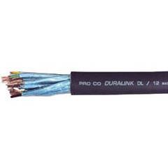 Build your own custom snakes or use for permanent recording studio construction. Helix multipair cable is made in the U.S.A. and is UL approved (CL-2). Each channel is 24 AWG twisted pair wires with a 100% spiral wrapped foil shield and polypropylene insulation. The extra thick matte black PVC outer jacket provides better protection than off-the-shelf multipair cables. Length: 50 ft. #Channels: 12. O.D.: 0.50". Mfg. #DL12.