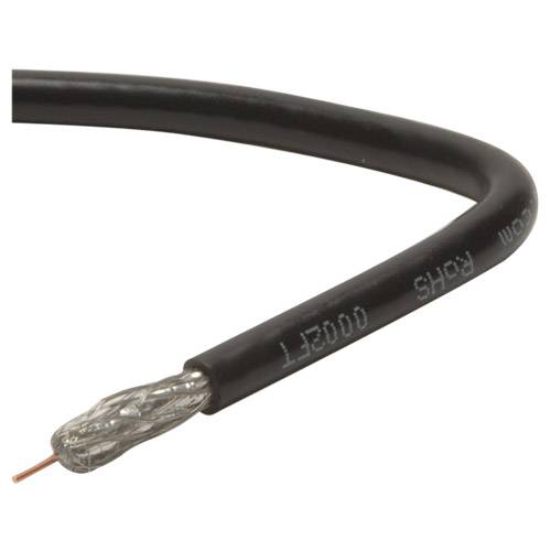 RG-6 is a staple of home, commercial, and industrial RF distribution systems. An 18 AWG copper-clad steel center conductor makes this RG-6/U cable strong and resilient to adverse outdoor conditions common with permanent digital cable, satellite, and antenna installations. Copper-clad steel also reduces cable kinks during cable pulls, saving installers time and money. A 60% coverage aluminum braid shield over 125% aluminized Mylar foil provides 100% shield against EM and RF interference. UL and C-UL listed; CMR rated for use within walls. In addition to being used as RF signal cable, this RG-6/U performs well enough to be used for custom length composite video, component video, and RCA audio cables. See the related items listing for easy-to-use connectors. Packaging was designed with ease of installation in mind. The spool-in-box payout system virtually eliminates performance robbing cable kinks during installation. If a traditional cable caddy is preferred, the spool can be quickly removed. Specifications: • Center conductor: 1.02 mm dia. copper-clad steel • Dielectric: 4.57 mm dia. foamed PE • Shield: 125% coverage aluminized Mylar foil and 60% coverage 80 x 0.12 mm dia. aluminum braid • Nominal impedance: 75 ohms • Velocity of propagation: 82% • Capacitance: 53.1 pF/meter • Nominal attenuation: 21.6 dB/100 meters 1 GHz • Overall diameter: 6.86 mm.
