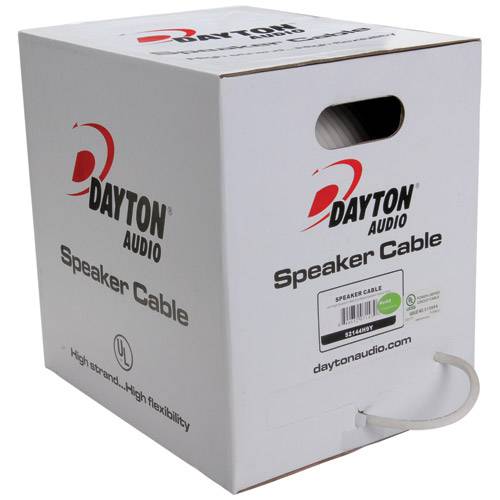 Why install performance robbing inferior speaker wire for your home theater or whole house audio system, with low-cost, high-performance Dayton Audio audiophile grade speaker wire only a quick phone call or mouse click away? Only select copper sources, known for their refined finished product, were selected in developing this cable. Once extruded, each cable conductor is tightly twisted with a paired conductor to reduce inductance for low high-frequency attenuation. This tight-twist is also responsible for a round cable edge, making the cable that much easier to pull around sharp-cornered studs or through conduit. Many small conductors make up Dayton Audio's speaker wire to reduce skin effect and bass-response robbing capacitance. Input from custom audio and video installers aided in the development of the cable jacket for trouble-free cable deployment. The end result is an exterior cable jacket that has been meticulously tested for maximum flexibility, with a smooth texture to keep cable runs feeding evenly without snags. UL listed, RoHS compliant, and CL2-rated (temperature rated to 75° C). Specifications: • Individual conductor: 41 x 30 AWG • Individual conductor overall diameter: 2.5 mm • Overall cable diameter: 7.80 mm • DCR: 0.88 ohms/100 meters. Ships in a Spool-in-Box payout system.