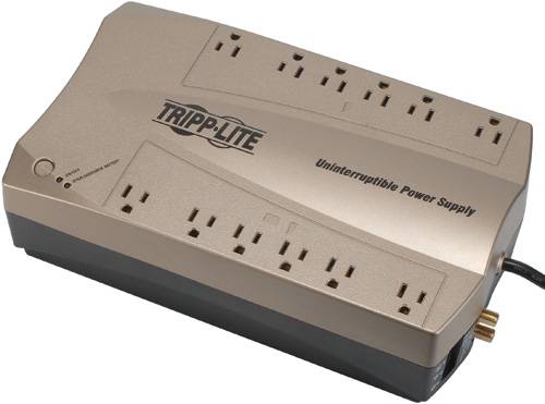 Tripp Lite's HT850UPS UPS System offers 400 joules of power protection to all home theater components: HDTVs, DVD recorders, projectors, A/V receivers, CD players and more. Additionally, the HT850UPS provides up to 3 hours* of battery backup and allows for proper cool down on expensive projector bulbs during blackouts. Damaging surges and disruptive line noise are filtered; components perform at their peak. 12 widely-spaced outlets accommodate large transformers. 6 outlets are provided full battery back-up and surge suppression to protect components that need to be constantly powered. 6additional surge-suppression-only outlets are for protecting components which do not require battery support. Phone-line surge suppressors safeguard satellite receivers against surge and lightning damage through phone lines. A built-in splitter allows you to connect and protect two components sharing a single phone line. Coaxial protection safeguards components on a cable, satellite or antenna line. USB port and FREE PowerAlert Software provide automatic shutdown of a PC. $100,000 Lifetime Insurance coverage (USA & Canada only). Package includes: power center, high-current 6 ft. power cord with right-angle plug, 6 ft. coaxial cable, 6 ft. USB cable and 6 ft. phone cable. Battery times will vary depending upon use Specifications: *Output capacity: 450 watts (750 VA) *12 outlets (6 UPS protected) *Dimensions: 4" H x 12" W x 7" D.