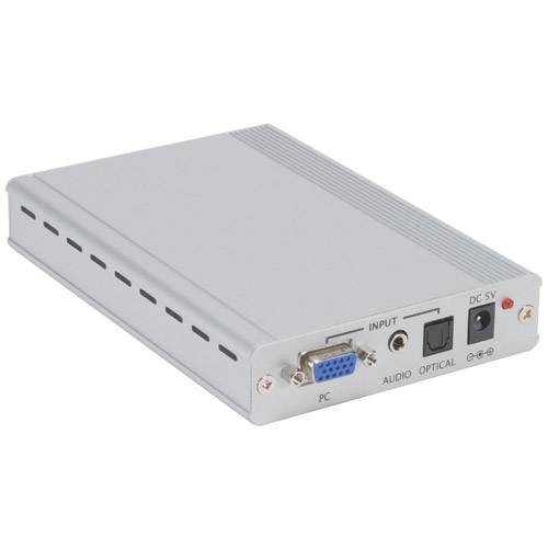 Imagine if you could sit back in your easy chair as you check e-mail, feel greater intensity from your favorite PC-based video games, or simply surf the internet on the HDTV in your living room. HDTVs are ideally suited to work with PCs, but more often than not, lack the input connection necessary. Simple video converters typically change the sync frequency of the video source to match that of the display. This technique leaves room for video artifacts and errors that negatively impact your viewing experience. Video scalers apply complex mathematical equations to calculate and plot the pixel values of the image resized. Scalers often also apply video processing to improve the apparent definition of the video signal resulting in a perceived high-definition video image. The PC to HDMI scaler accepts an analog VGA source (such as the output from a video card), and outputs it as a high definition digital video signal carried over HDMI. Automatic detection of the native resolution allows the unit to set the output signal to the optimum capability of the display or you can manually adjust the settings via the intuitive on screen menu. Analog stereo audio and optical digital audio (standard on most modern motherboards) is encoded with the HDMI video signal for decoding by the HDMI receiver in the monitor.