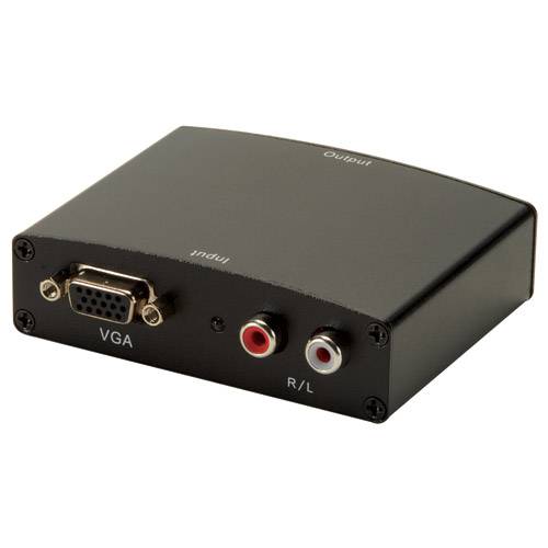 Connecting a computer's audio and video output to your HDTV has never been easier. Analog VGA (RGBHV) from a PC or laptop is combined with analog audio and is converted to a digital signal to be sent to a flat panel display over an HDMI cable. Power supply included.