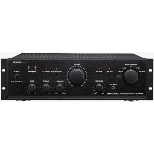 The Denon Professional DN-A300M Professional Integrated Amplifier is the ideal solution for any sound reinforcement installation or application needing an affordable compact PA system. Complete with 2 — 100 watt switchable power amps and a front-panel microphone input with auto-sensing music ducking, the DN-A300M allows a user the ability to broadcast a message over any of the 6 audio source inputs; a function highly desired in many small restaurant, bar and retail environments.