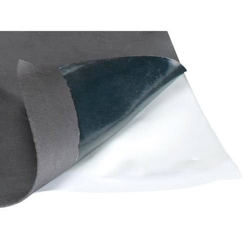 The Sonic Barrier AB1 sound insulating and damping sheet absorbs the vibration of any solid material and transforms it into thermal energy (low level heat). It is made of an asphalt based polymer with aggressive pressure sensitive adhesive on one side, allowing for easy peel-and-stick application. The flexible nature of the damping sheet enables it to mold and conform to irregular surfaces. Can be cut using a standard razor knife. • Effective temperature range: -30° F to 350° F • Sheet thickness: 0.070" • Sheet dimensions: 39" x 39" (x 2) • Coverage: 21 sq. ft.