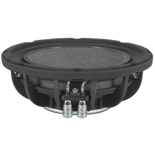 The mounting dimension is shallow, but the response is deep! Dayton Audio's NS Series offers new possibilities for installing low distortion, high output sub drivers. As little as 2-1/2" in depth (NS210-44 8"), these heavy duty neodymium transducers are perfect for mounting in walls, floors, and even ceilings, as well as stealthy mobile audio applications. The performance characteristics alone will convince you to use NS Series subs—even when space is not an issue! Specifications: *Power handling: 200 watts RMS/400 watts max *VCdia: 2" *Le: 0.85 mH *Impedance: 2 ohms *Re: 1.82 ohms *Frequency range: 35-500 Hz *Fs: 38 Hz *SPL: 91 dB 2.83V/1m *Vas: 0.51 cu. ft. *Qms: 5.74 *Qes: 0.39 *Qts: 0.37 *Xmax: 7 mm *Dimensions: A: 8-1/4", B: 7-3/8", C: 2-1/2". Note: All specifications are with voice coils connected in parallel.