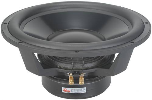 The Dayton Reference Series subwoofers take the quality and performance of the much acclaimed RS line into the subwoofer realm. As with the rest of the Reference Series, the main focus of these subwoofers is ultra-low-distortion. Second, third, and intemodulation distortion are kept extremely low by utilizing three short-circuit paths within the motor structure. A durable aramid fiber spider and extensive venting throughout provide quiet and uniform excursion. The black anodized cone, rubber surround, and custom basket give this driver a unique, high-end look. Choose the high output version for automotive applications or for equalized high-power home subwoofers. Specifications: * Power handling: 800 watts RMS/1400 watts max * VCdia: 2-1/2" * Le: 1.83 mH * Impedance: 4 ohms * Re: 3.3 ohms * Frequency range: 21 - 600 Hz * Fs: 24 Hz * Magnet weight: 150 oz. * SPL: 90 dB 2.83 V/1m, 87 dB 1W/1m * Vas: 3.87 cu. ft. * Qms: 4.48 * Qes: .42 * Qts: .39 * Xmax: 12mm * Dimensions: Overall diameter 15-5/16", Cutout diameter 14-1/8", Depth 6-1/8".