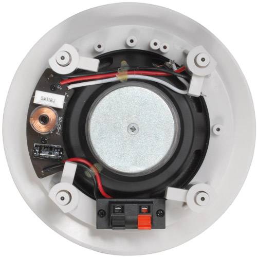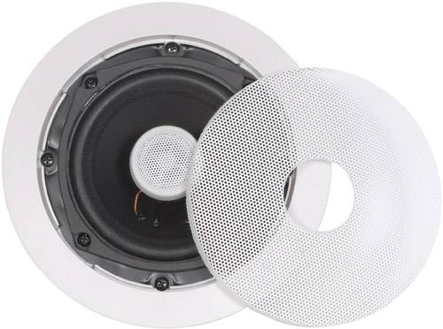 If you're searching for a ceiling speaker that is small in size yet delivers a punch, you just found it! The ES50C from the Dayton Audio Elite Series delivers superb highs and smooth lows. Audiophile engineering makes this ceiling speaker perfect for kitchens, sunrooms, baths, or anywhere else where space is at a premium. The 5-1/4" multi-polymer cone woofer raises the bar for performance and affordability. The 3/4" pivoting silk dome tweeter allows you to customize the placement of highs, while liquid cooling maintains performance. Creme white. Specifications: *Power handling: 30 watts RMS/60 watts max *Impedance: 8 ohms *Frequency response: 59-20,000 Hz *Dimensions: 8" dia. *Cutout: 6-1/4" dia. *Mfg. #ES50C *Sold in pairs.