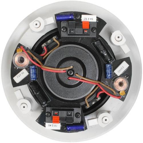 Ever find yourself in need of having to place sound in an area that is just too small for a conventional set of stereo speakers to be installed? These Dayton Audio Elite stereo ceiling speakers are the answer to just that. Once installed, you'll have stereo sound from a single location! Each speaker contains a multi-polymer cone woofer and dual neo-driven silk dome tweeters. Single unit creme white paintable frames with screw-foot pull down allow for a quick 5 minute installation. Specifications: *Power handling: 40 watts RMS/80 watts max *Impedance: 8 ohms *Frequency response: 55-20,000 Hz *Dimensions: 8-1/2" dia. *Cutout: 7-3/8" dia. *Mfg. #ES65CS *Sold individually.