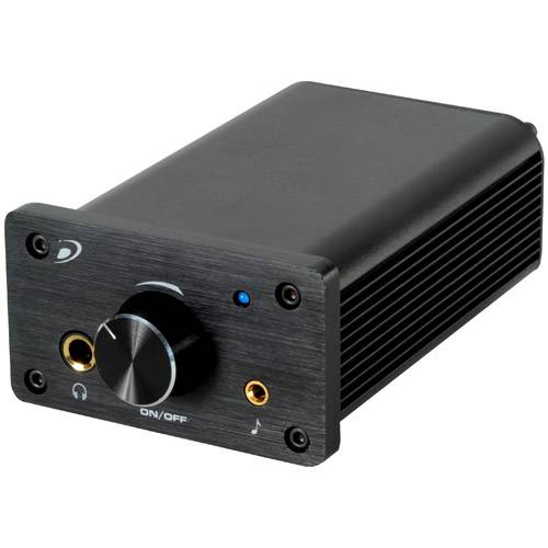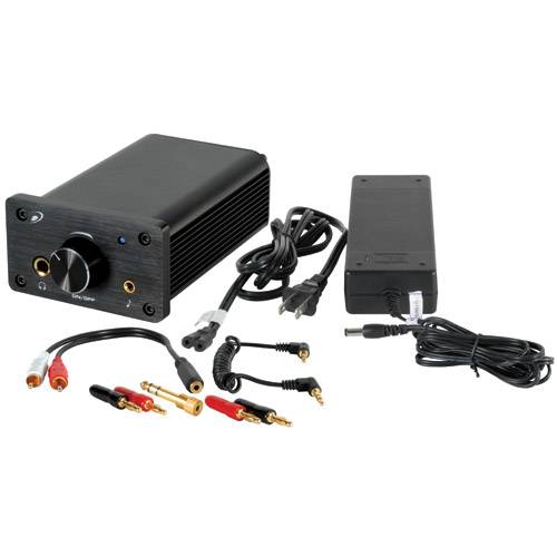 The DTA-100 utilizes the Tripath TK2050 chipset that provides 50W continuous power per channel (100W total) into an 8 ohm load. Class T amplifiers offer the audio fidelity of a Class AB amplifier while providing the power efficiency of a Class D. The unit features a convenient front-mounted 3.5 mm stereo input for quick connection of iPods, MP3 players, and other portable audio devices. A rear mounted RCA type line level input is also provided for permanent connection of larger devices such as CD players. Speaker output connections utilize high current banana plug receptacles that are spaced on 3/4" centers and are compatible with standard double banana plug connectors (sold separately). High quality screw-on banana plugs that will accept 10~18 AWG wire are included. The DTA-100 also doubles as a high fidelity headphone amplifier that will drive any headphone easily and delivers colossal sound stage and effortless dynamic range. The 1/4" stereo jack allows connection of larger home and studio style headphones. An adapter is also provided so smaller 3.5 mm personnel style headphones can be used. It comes complete with a world compatible power supply and all adapters needed to get connected.