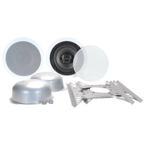 Install ceiling speakers in schools, offices and institutions in compliance with fire codes and the NEC. The key to this system is the UL listed protective metal enclosure that contains the speaker within the plenum space. The metal enclosure locks into place in the metal ceiling bridge that supports the metal enclosure from the ceiling t-bars for added installation safety. When used with the supplied plenum rated speaker cable, this system meets UL 2043 specifications. The speaker features a 6-1/2" carbon fiber cone with a butyl rubber surround, a coaxial mounted 1" Mylar dome tweeter and a 70V transformer tapped at 0.62W, 1.25W, 2.5W, 5W, and 10W. To ease installation the speaker has removable steel mesh grills, built-in mounting brackets, hardware, and installation instructions. Specifications: • 70V tap settings: 0.62W, 1.25W, 2.5W, 5W, and 10W • Frequency Response: 60-20,000 Hz • SPL: 89 dB 1W/1m • Dimensions: 8-1/2" dia. x 2-3/4" D • Cutout Size: 7-3/8" dia. Sold in pairs.