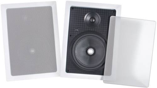 Dayton Ultra Series 8" two-way in-wall combines fidelity, reliability, and great value. A state of the art tough Kevlar cone gives the US820W the ability to reproduce more accurate bass than paper cone woofers, thanks to its stiff yet light composition; an integrated phase plug ensures reduced phase distortion. The ferrofluid-cooled 1" silk dome tweeter reproduces highs with amazing accuracy and pivots for improved stereo imaging. An IR knockout offers discreet integration of infrared control systems and accepts standard "tube" style IR receivers. The US820W packs a punch and will perform effortlessly in the front channel or rear surround applications of any home theater system. Replacement metal grill #302-438. Specifications: *Woofer: 8” Kevlar cone *Tweeter: 1” pivoting silk dome *Power handling: 60 watts RMS/120 watts max *Impedance: 8 ohms *Frequency response: 35-20,000 Hz *Sensitivity: 91 dB 1W/1m *Dimensions: 14-1/2" H x 10-1/2" W x 3-1/4" D *Cutout size: 13" H x 9" W *Mfg. #US820W *Sold in pairs.