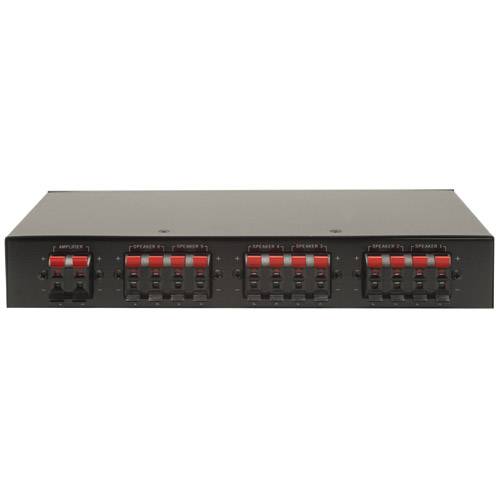 This high power high performance speaker switch features pushbutton switches for independent control of 6 speaker pairs. Your amplifier is fully protected against low impedance and overload by a protection On/Off switch located on the front panel so protection can be easily switched on or off. Color coded pushbutton, spring loaded terminals accept up to 14 gauge wire. Comes with button identification sticker sheet for easy identification of rooms. Compatible with all amplifiers. Black in color. Power handling: 100 watts RMS per channel of input power. Dimensions: 11-1/4" W x 2" H x 6-3/4" D. Net weight: 2.75 lbs.