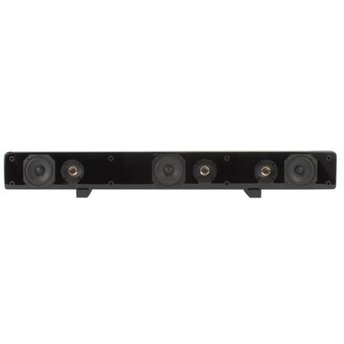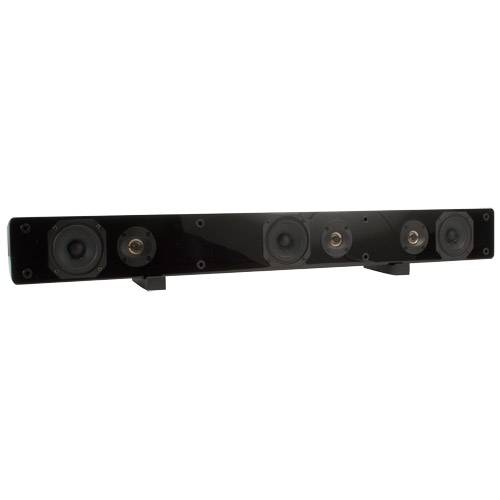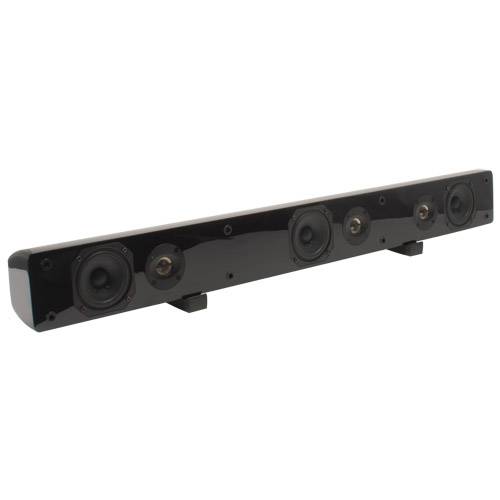 This small-but-mighty speaker bar combines left, center, and right channel speakers into a single convenient mountable bar that can be positioned above or below the screen or sit free standing. The BS36 uses long-excursion woofers for superb dynamic impact and bass extension, unlike the thin sounding speakers built into HDTVs. When combined with a pair of SAT-BK satellite speakers and a powered sub, like the SUB-80, you'll have created a big sound, compact-sized surround sound experience that will impress family and friends. The BS36 LCR speaker bar is easy to install and the beautiful hand rubbed black lacquer finish will turn a Steinway piano green with envy! Each speaker bar is packaged with a pair of rubber speaker feet for table top mounting. Specifications: *Three 3-3/4" paper cone woofers *Three 5/8" aluminum tweeters *Power handling: 50 watts RMS/80 watts max *Impedance: 8 ohms *Frequency response: 100-20,000 Hz *SPL: 87 dB 1W/1m *Dimensions: 4-3/4" H x 37" W x 4-1/4" D. Note: Screw mounts and M5 threaded inserts that are designed for 16" on-center studs. Hardware sold separately. See related items for optional Hangman mounting bracket.