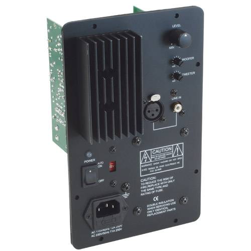 Now with XLR inputs, user selectable crossover points, and more HF power! Dayton Audio's MCA3545 Bi-Amplifier was designed for use in active 2-way loudspeakers for music playback, computer sound systems, and home theater applications. Independent high and low level controls and user-selectable crossover points enable customization to any drivers and listening environment. General Specifications: Selectable crossover points: 2.2 kHz, 3.2 kHz, 3.8 kHz, 4.5 kHz, and 5.2 kHz  24 dB/octave *Input voltage: Selectable 115V/230V, fuse protected. Low Frequency Output Specifications: *Power output: 45 watts RMS  8 ohms *Frequency response: 15 Hz-5.2 kHz *THD+N: < 1%  rated power *S/N ratio: 80 dB. High Frequency Output Specifications: *Power output: 35 watts RMS  8 ohms *Frequency response: 2.2 kHz-20 kHz *THD+ N: < 1%  rated power *S/N ratio: 80 dB. Dimensions: *Overall: 5-3/8" W x 8-5/8" H x 4-1/2" D; Enclosure cutout: 4-5/8" W x 7-3/4" H.