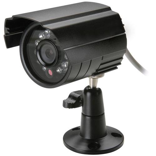 Four 600 line high-resolution color cameras include mounting hardware, power supplies, and cables. Twelve IR LEDs illuminate the area, projecting a 50' light visible to the camera but not to an intruder. The weatherproof aluminum housing with sunshade will protect the camera whether used indoors or out.