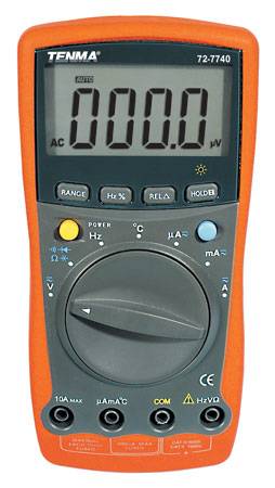 Full function multimeter offers a variety of ranges for every service application, plus Celsius temperature measurement. Rugged overmolded housing stands up to the daily rigors of field service use, and large LCD display is easily read from several feet away. Measures AC/DC voltage, AC/DC current, resistance, capacitance, temperature, frequency and duty cycle.