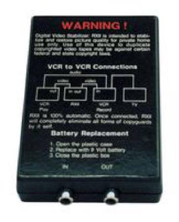 State of the art integrated circuit makes perfect copies of any video tape. Compatible with all types of VCRs and TVs. Lightweight and compact. Requires one 9V battery (not included).