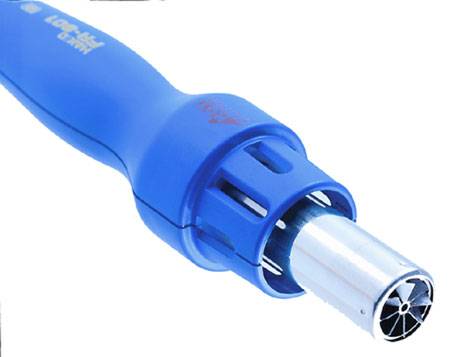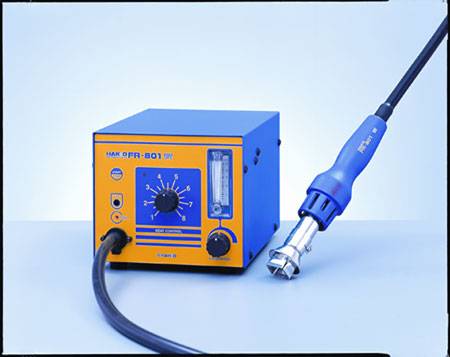 The Hakko FR-801 is one of the new generations of SMD rework systems for soldering and desoldering SMDs. The unique air stream outlet design allows for consistent temperatures of the hot air stream generated by the unit.