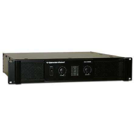 Model CV-900 Pro Audio High Performance Professional Power Amplifier. 2U rackmountable amp with the power to handle the most demanding audio challenge. Features front panel LED displays to indicate power, clip protect and signal status, balanced XLR and TRS input connectors, and Speakon NL-4 locking output connectors and binding posts. Detented 21-position input level control knobs. Defeatable limiter and high pass filter per channel. Short circuit, thermal, current limit, DC offset, current inrus, RF protection, Turn on/ Turn off muting protection. Flow-through cooling design prevents overheating with continuously variable speed, front to rear.