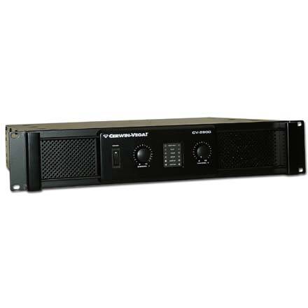 Model CV-2800 Pro Audio High Performance Professional Power Amplifier. 2U rackmountable amp with the power to handle the most demanding audio challenge. Features front panel LED displays to indicate power, clip protect and signal status, balanced XLR and TRS input connectors, and Speakon NL-4 locking output connectors and binding posts. Detented 21-position input level control knobs. Defeatable limiter and high pass filter per channel. Short circuit, thermal, current limit, DC offset, current inrus, RF protection, Turn on/ Turn off muting protection. Flow-through cooling design prevents overheating with continuously variable speed, front to rear.