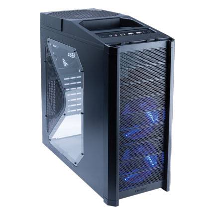 - 2 front 120mm special black TriCool blue LED fans with 3-speed switch control to cool HDDs