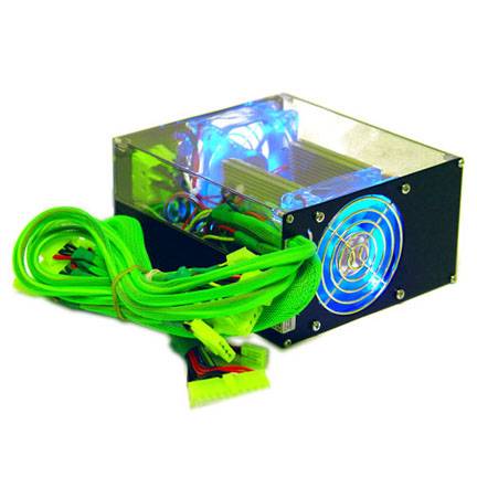 This gorgeous Apevia aluminum 500w see-through power supply is the most spectacular power supply you can ever find in the market. Masterfully designed and expertly engineered, this power supply features 500W of power housed in lightweight aluminum chassis combining sufficient cooling, quiet and extraordinary performance in a stunning stylish design. Supports Pentium 4 and AMD CPUs. The power supply has two built-in 80mm blue UV reactive LED fans for best cooling and a fan speed adjustor to control the fan speed and reduce the noise level while maximizing its cooling capacity. The power supply comes with loads of phenomenal features, including the two blue UV reactive fans, UV reactive plug, switch, adapters and UV reactive wire sleeves. The blue light shines through its acrylic cover showing all the vibrant colors of the power supply when turned on, it is most eye-catching beauty. Short Circuit/ Under Voltage/ Over Voltage/ Over Current/ Over Power Protection functions ensure and stabilize your system. Made of the fire-resistant quality components, Apevia has undergone the most rigorous testing in the industry to offer the best cooling, reliability, durability and performance for today's heavily loaded PC. This power supply is a state-of-art cutting edge innovation for gamers and PC enthusiasts.