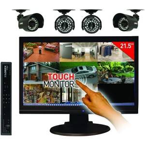 21.5" Touchscreen LCD Surveillance System with Edge+ 8-Channel, 500GB DVR & 4 High-Resolution Cameras