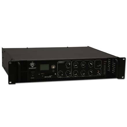 Saga Pro SAG6007 PA Mixing Amp features an MP3 player with USB and SD Card inputs, 3 Mic and 3 Aux inputs, and 1 line output. Provides 70V, 100V Pa-outputs with 4-16 ohms output for connecting a passive speaker-system for monitor, maximum output power less than one-third of the rating power. The front panel has one mic connection with Priority function. It is fan-cooled and offers over-current, short-circuit, and turn-on delay protection circuits. Suitable for 19in rack-mounting.